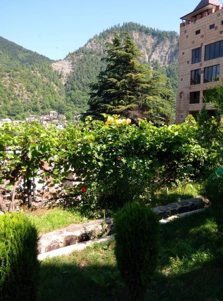 Плюсы: Расположение в центре курорта Боржоми. Территория компактная, зелёная, есть бассейн и бюветы с теплой и холодной минеральной водой. Питание разнообразное, в том числе диетическое. Процедуры, в основном, направлены на лечение болезней ЖКТ. Номер чистый, кровати удобные, предоставляют халаты, тапочки, пополняют воду каждый день. Уборка хорошая. Персонал и врачи говорят на русском. Вечером проводятся развлекательные мероприятия, живая музыка.